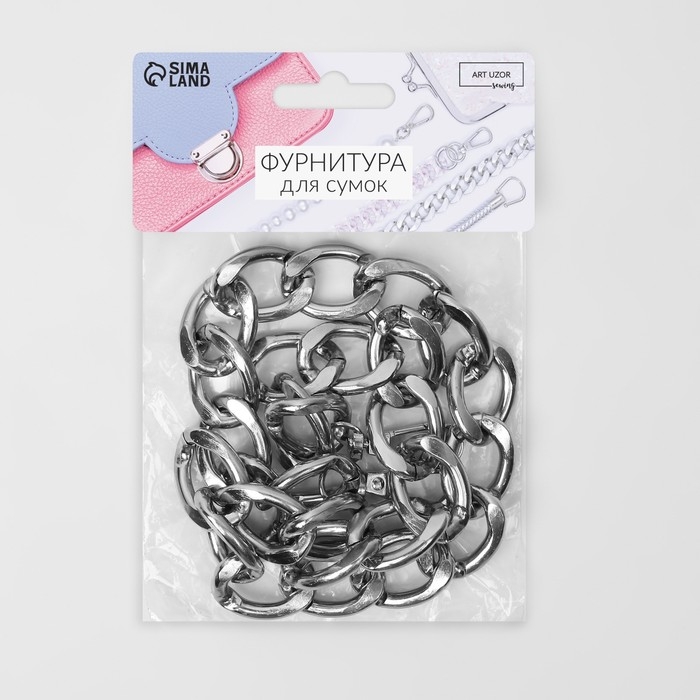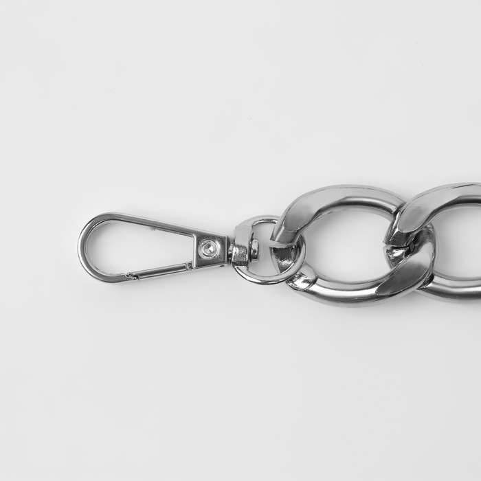 Цепочка для сумки, с карабинами, металлическая, плоская, 29 × 19 мм, 60 см, цвет серебряный