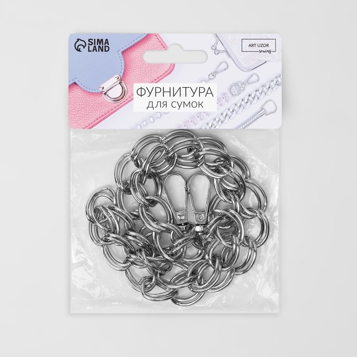 Цепочка для сумки, с карабинами, железная, 7 × 7 мм, 120 ± 2 см, цвет серебряный
