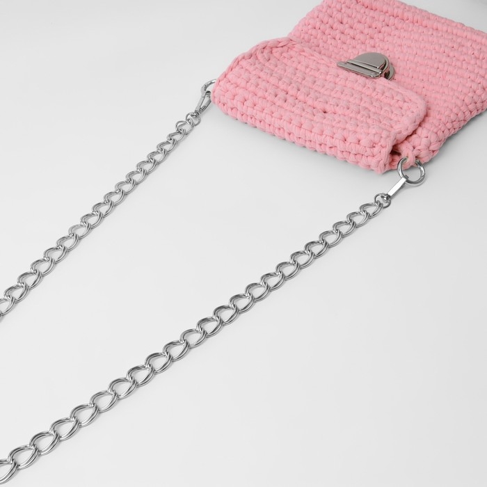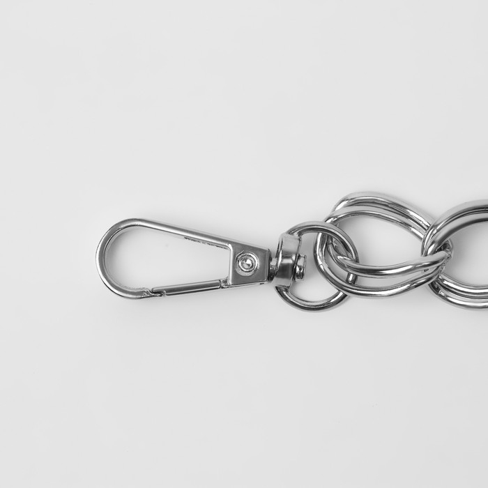 Цепочка для сумки, плоская, с карабинами, алюминиевая, 9 × 14 мм, 60 см, цвет серебряный