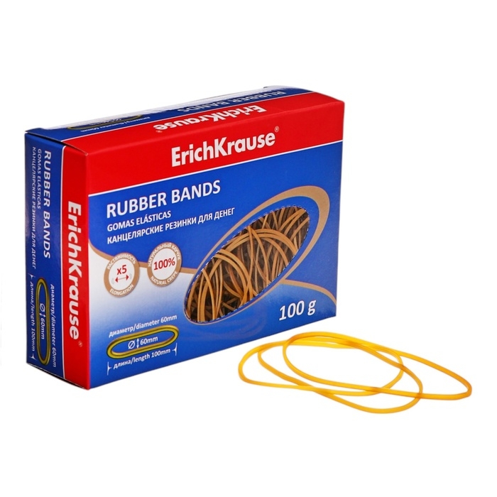 Банковская резинка, 100 г, ErichKrause, диаметр 60 мм, длина 100 мм, 100% каучук, в коробке-деспенсере, натуральный цвет