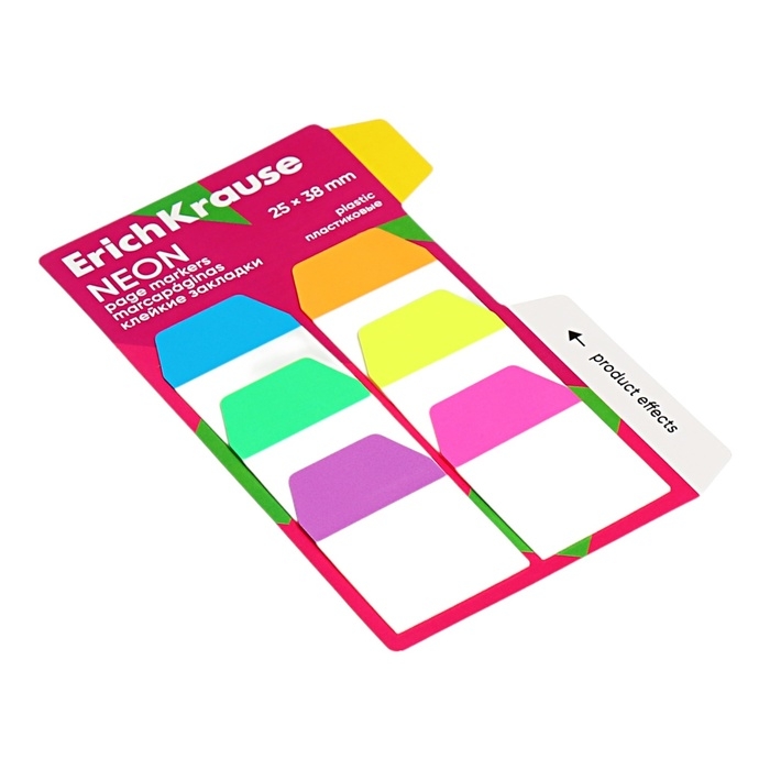 Закладки с клеевым краем пластиковые, 25х38 мм, ErichKrause, "Neon", 60 листов, 6 цветов