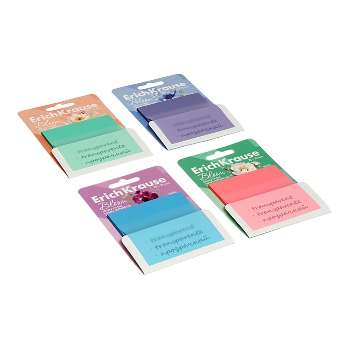 Блок с липким краем пластиковый 75X75 мм, ErichKrause "Pastel Bloom", 50 листов, микс