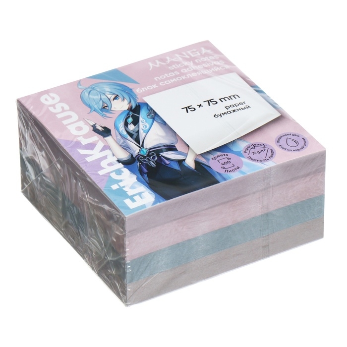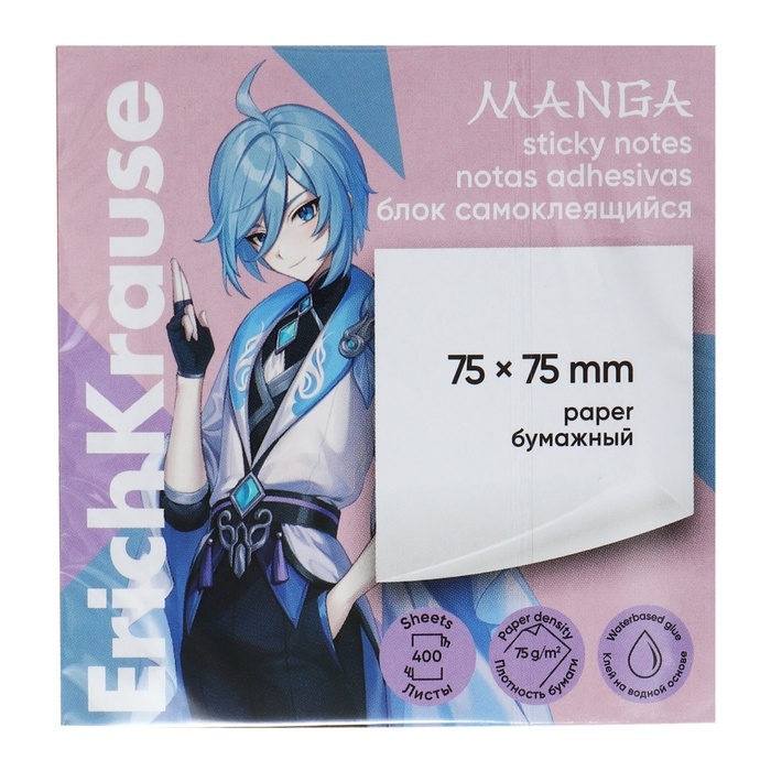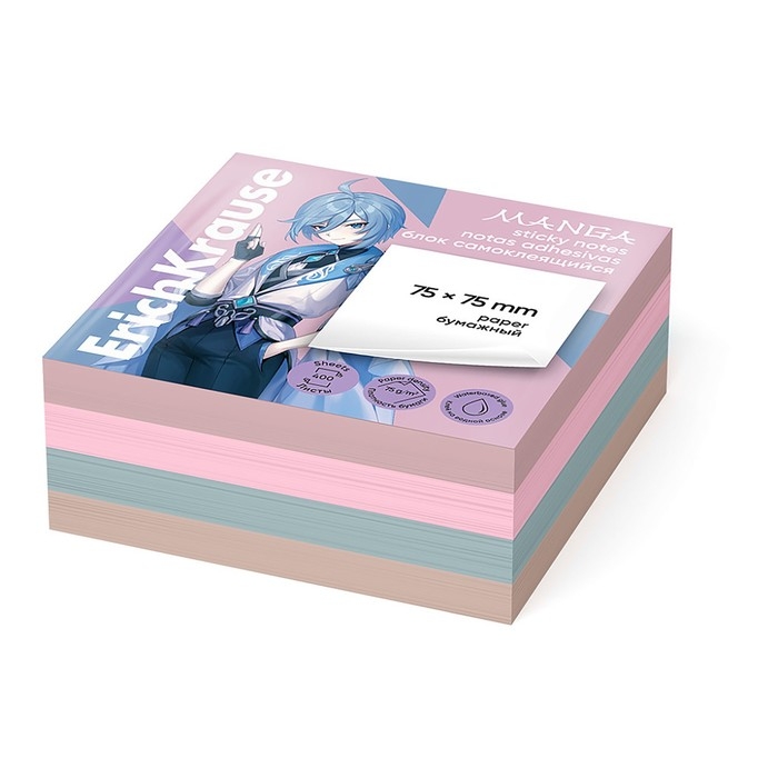 Блок с липким краем бумажный 75х75 мм, ErichKrause "Manga". 400 листов, 4 цвета
