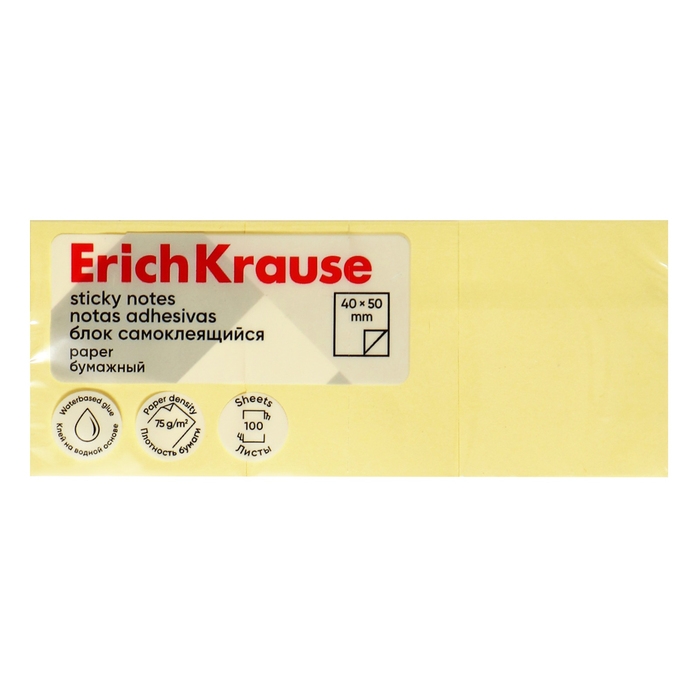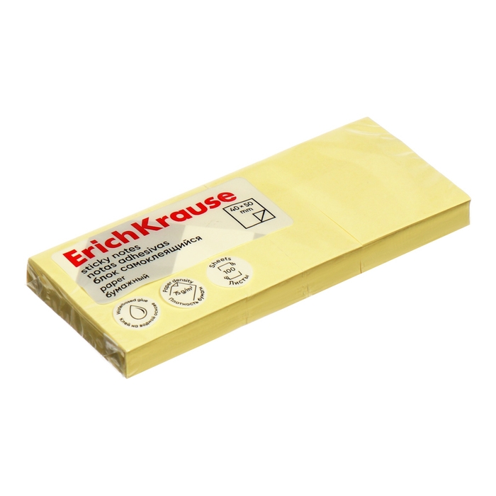 Блок с липким краем бумажный 40х50 мм, ErichKrause, 300 листов, желтый