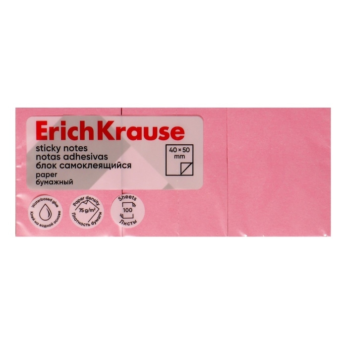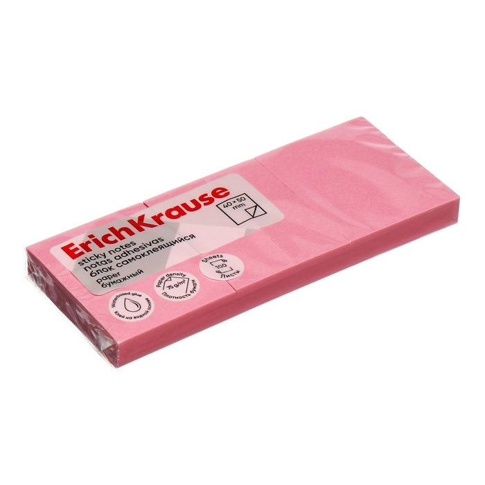 Блок с липким краем бумажный 40х50 мм, ErichKrause, 300 листов, розовый