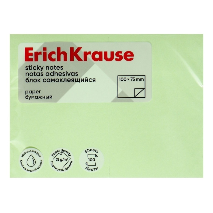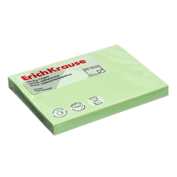 Блок с липким краем бумажный 100х75 мм, ErichKrause, 100 листов, зеленый