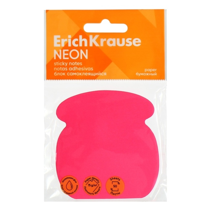 Блок с липким краем бумажный 70х70мм, ErichKrause "Phone Neon", 50 листов, розовый