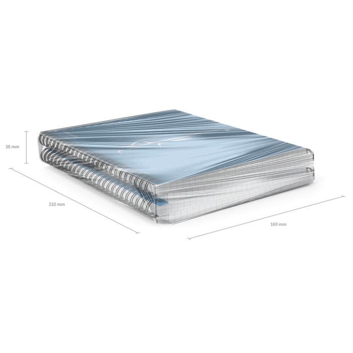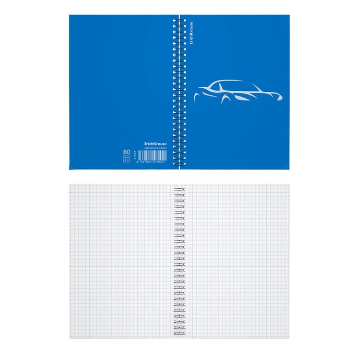 Тетрадь общая формата А5 (148x210 мм). Обложка из высококачественного износостойкого пластика с фактурой "песок". В блоке 80 листов в клетку. Бумага офсетная плотностью 60 г/м2. Цвет линовки - синий. Скругленные уголки обложки. Тип скрепления - спираль. Тетради упакованы в термоусадочную пленку по 4 штуки.