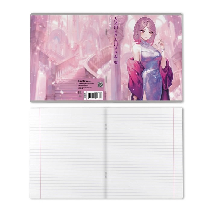 Тетрадь предметная ЛИТЕРАТУРА, 48 листов в линейку, ErichKrause Manga, обложка мелованный картон, твин-лак, блок офсет 100% белизна, инфо-блок