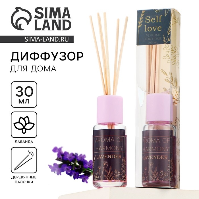 Диффузор ароматический палочки, ароматизатор для дома «Аромадиффузор: Self love», аромат лаванда, 30 мл.