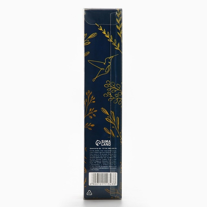 Он имеет изысканный дизайн с золотистым узором на черном фоне, который отлично впишется в любой интерьер. Аромат лаванды создает атмосферу спокойствия и умиротворения, а тонкие палочки из натурального дерева равномерно распространяют аромат по комнате.