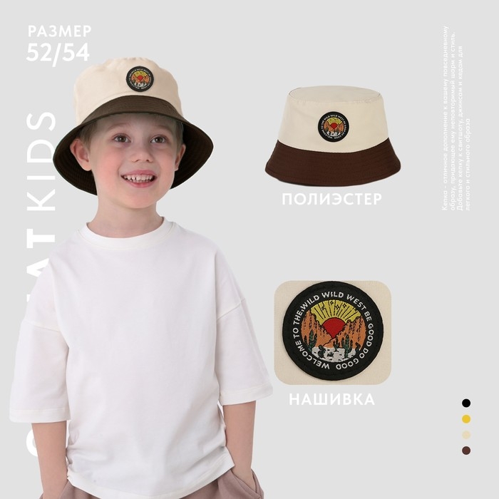 Панама детская для мальчика «Дикий мир», цвет бежевый, р-р 54