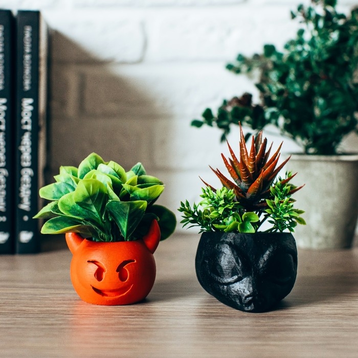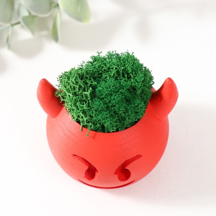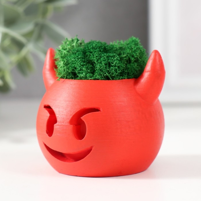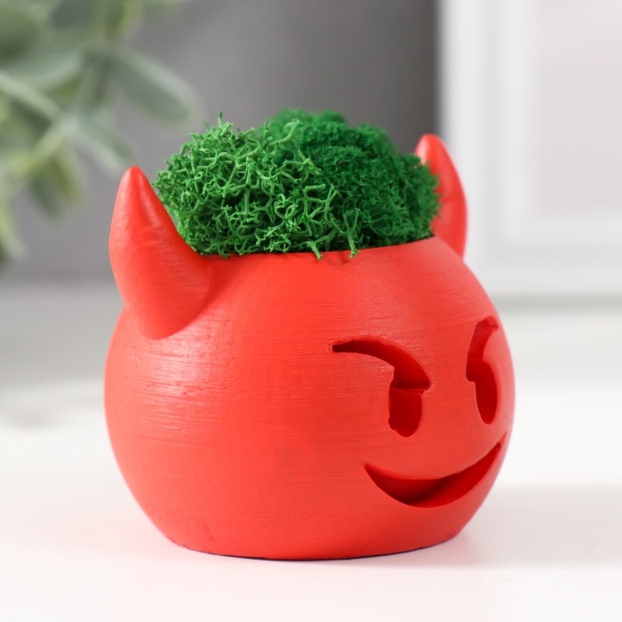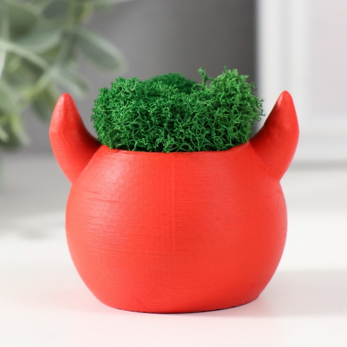 Кашпо бетонное "Чертик" 6,5х6х5,5 см красный со мхом (мох зелен. стабилиз)