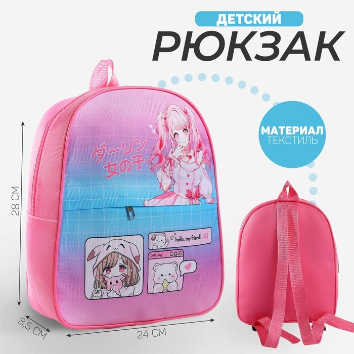 Рюкзак детский с карманом для девочки «Аниме девочка», 30х25 см