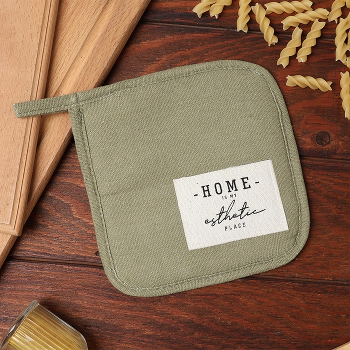 Прихватка Этель "HOME", цвет зелёный, 16х16 см, 50%хл, 50%лен