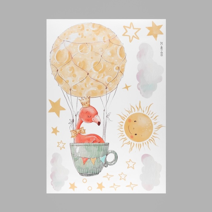 Наклейка пластик интерьерная цветная "Фламинго в облаках" 40х60 см