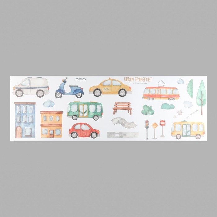 Наклейка пластик интерьерная цветная "Городской транспорт" 30х90 см
