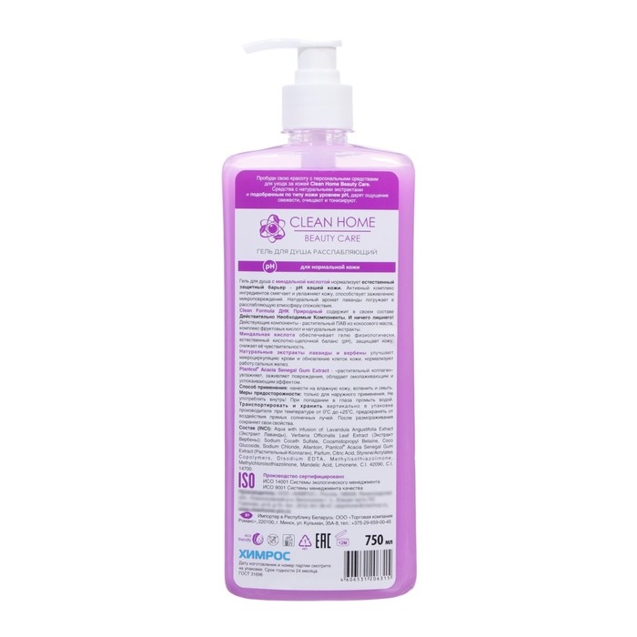 Гель для душа Clean home «Лаванда и вербена», с дозатором, расслабляющий, 750 мл