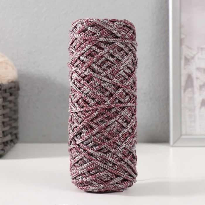 Шнур для вязания 35% хлопок,65% полипропилен 3 мм 85м/160±10 гр ( Вишня/серый)