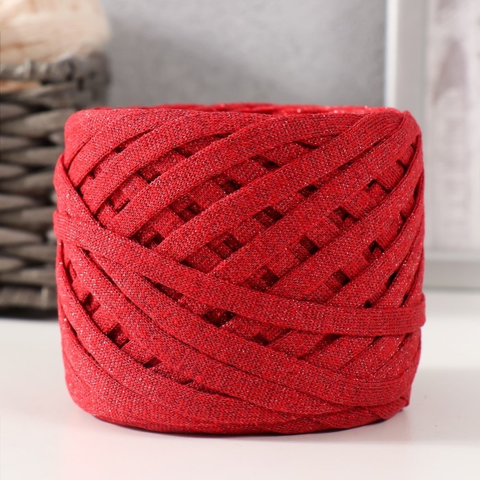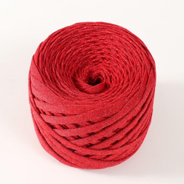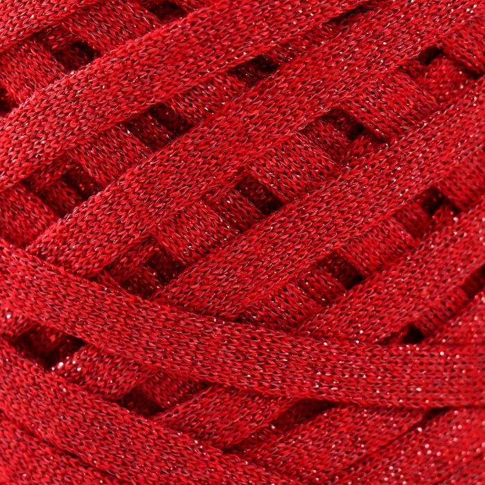 Трикотажная пряжа "Риббон" с люрексом 85м/170±5 гр (Красный, люрекс: Красный)