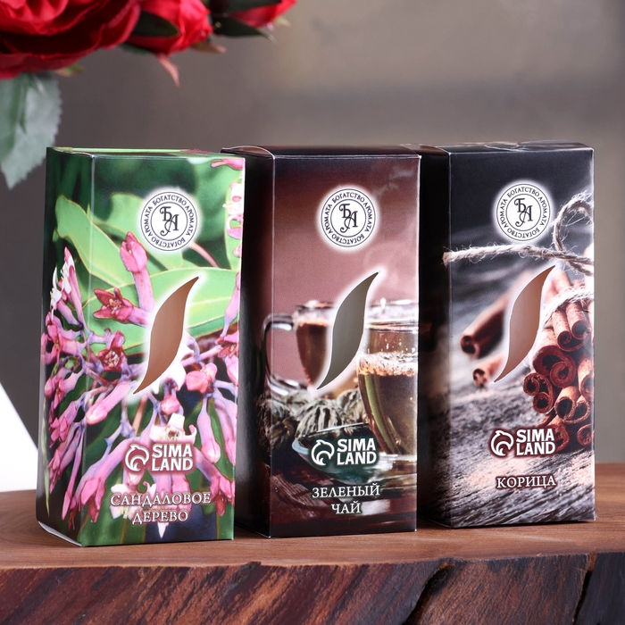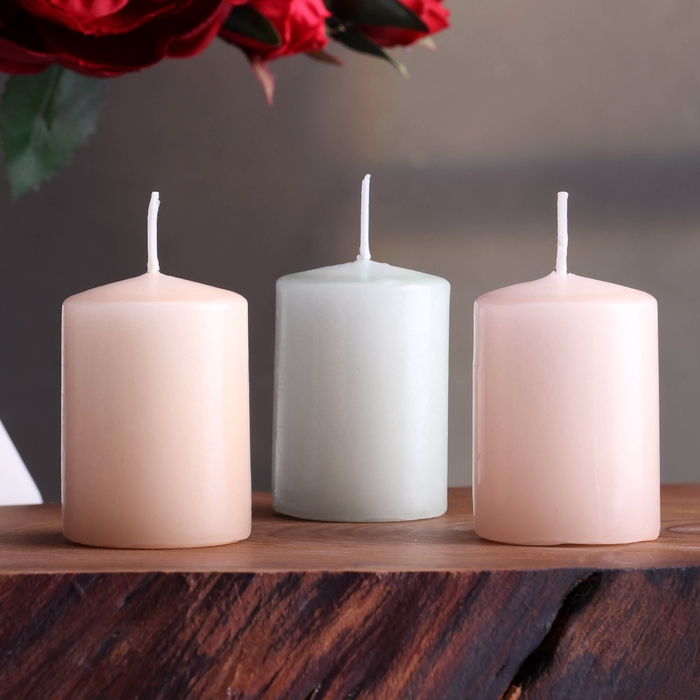Свеча ароматическая "Сандал, Зеленый чай, Корица", 4х6 см, набор 3 шт, в коробке