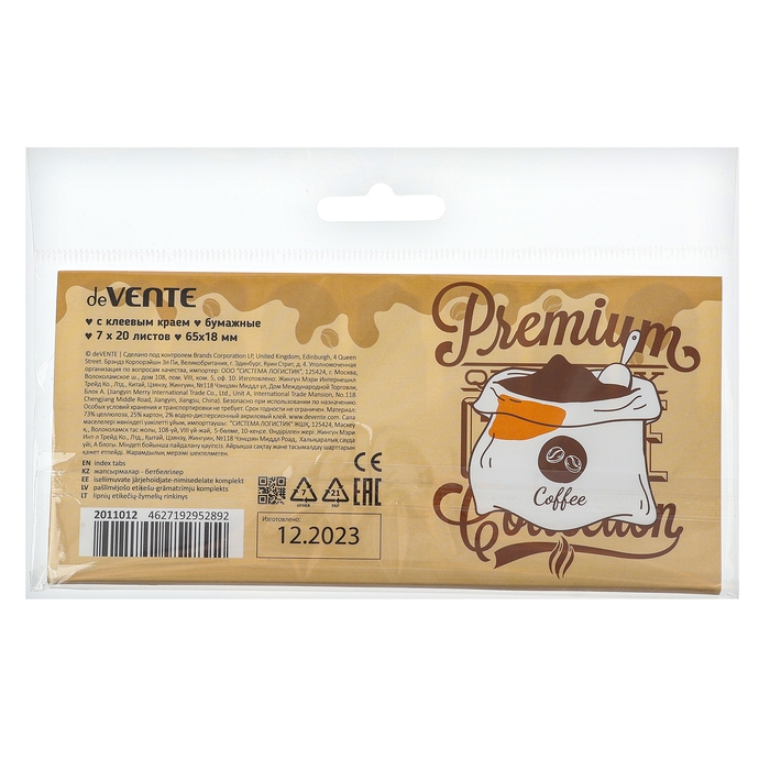 Закладки с клеевым краем 18 х 65 мм, 7 цветов х 20 листов, бумажные, deVENTE Coffee 2011012