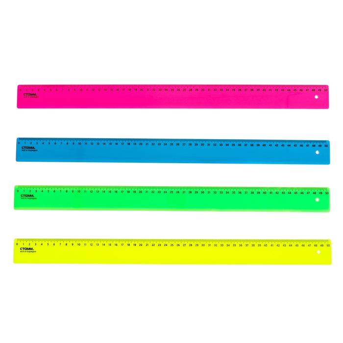 Линейка 50 см, Стамм, пластиковая, непрозрачная, неоновые цвета, микс (цена за 1 шт.)