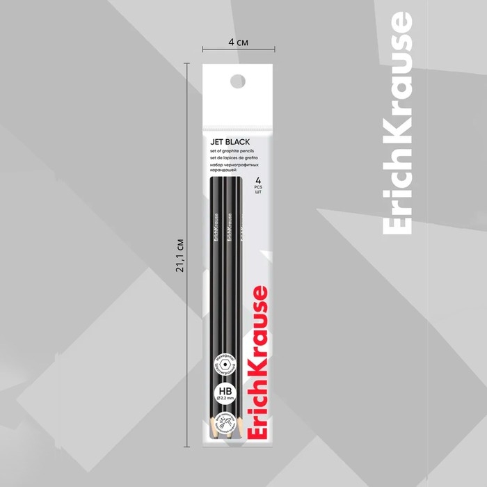 Набор чернографитных карандашей 4 штуки ErichKrause "Jet Black", HB, грифель d=2.2 мм, дерево, шестигранных, в пакете, чёрный корпус