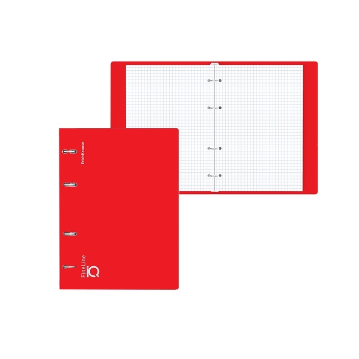 Тетрадь на кольцах, 100 листов в клетку, ErichKrause IQ FineLine Classic, пластиковая обложка, блок офсет 100% белизна, красная