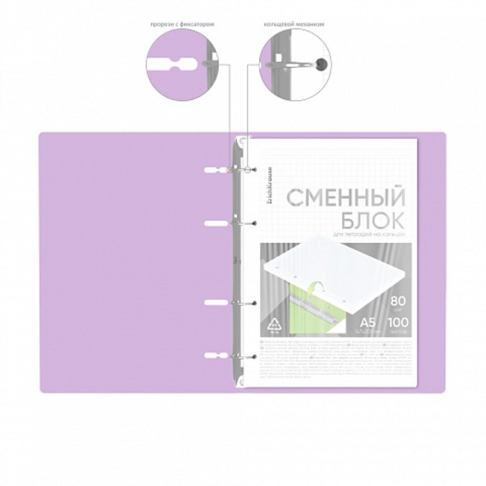 Сменный блок для тетрадей на кольцах А5, 120 листов в клетку, белый, 60 г/м2