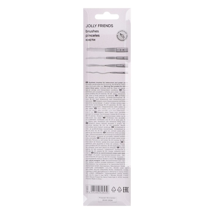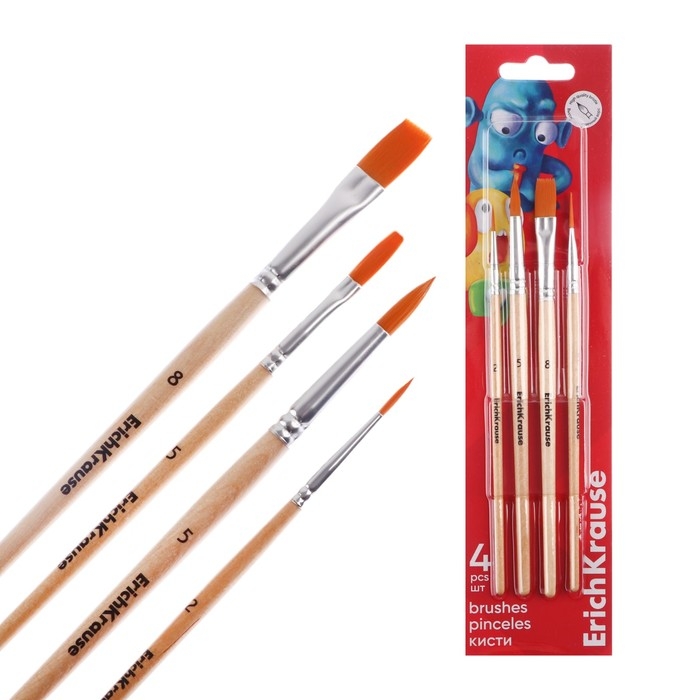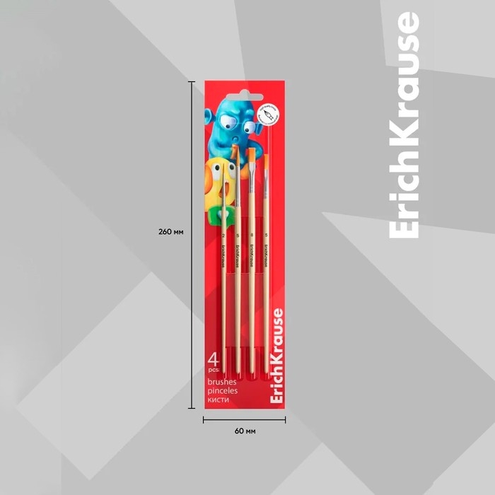 Набор кистей синтетика 4 штуки № 2, 5, 8 ErichKrause "Jolly Friends", для акварели и гуаши, блистер