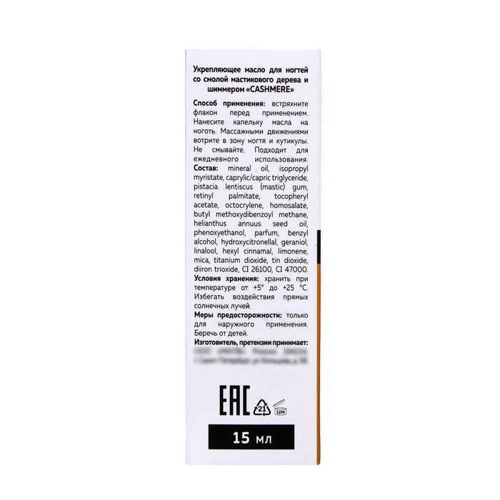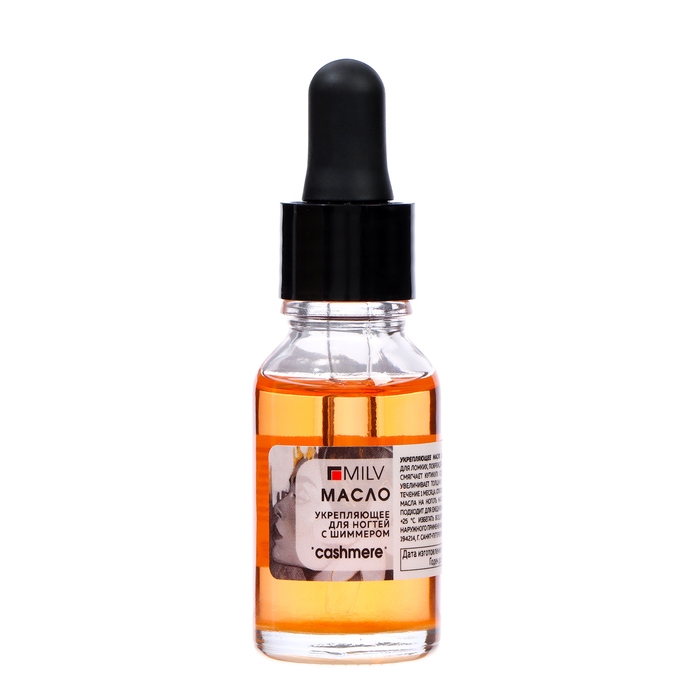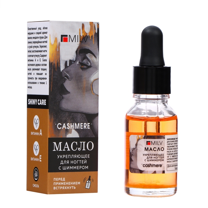 Масло для ногтей укрепляющее со смолой мастикового дерева и шиммером MILV кашемир, 15 мл
