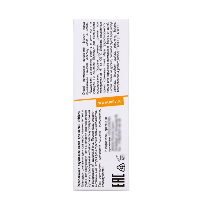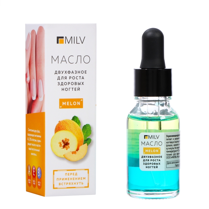 Масло для ногтей укрепляющее MILV двухфазное MELON, 15 мл