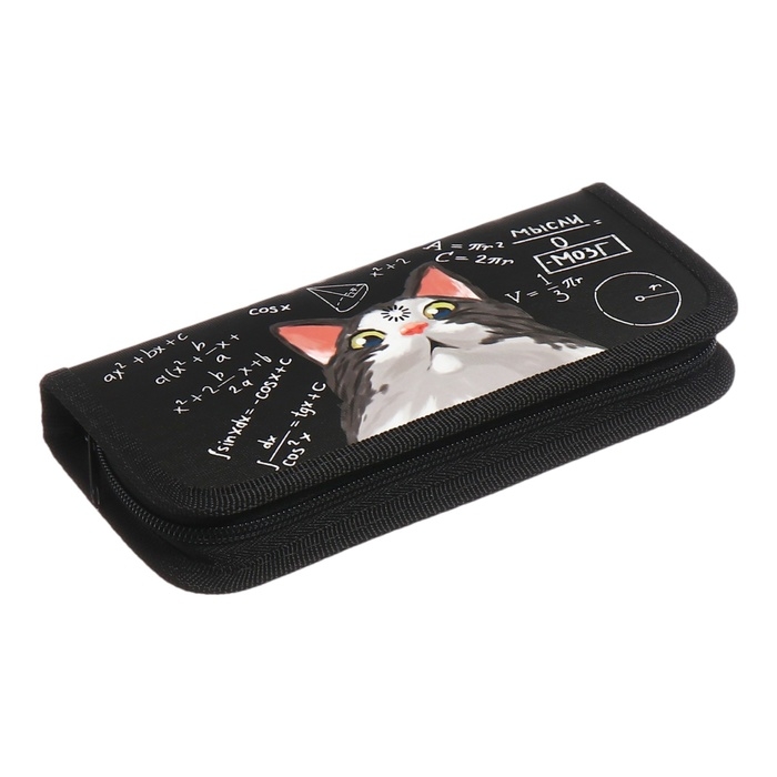 Пенал 1 секция, 90 х 195 х 25 мм, Calligrata "Умный кот", ламинированный картон