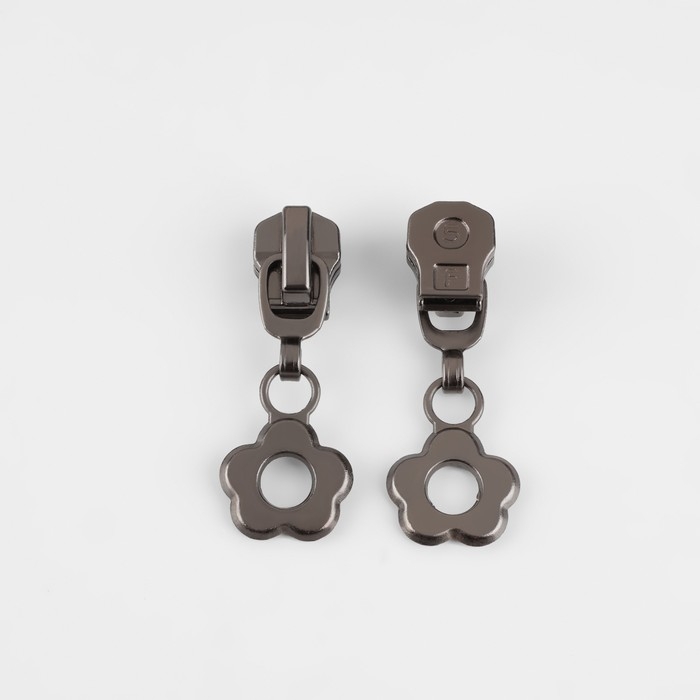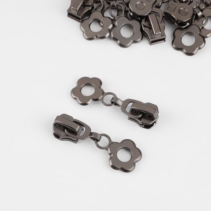 Бегунок автоматический для металлической молнии, №5, декоративный «Цветок», 10 шт, цвет чёрный никель