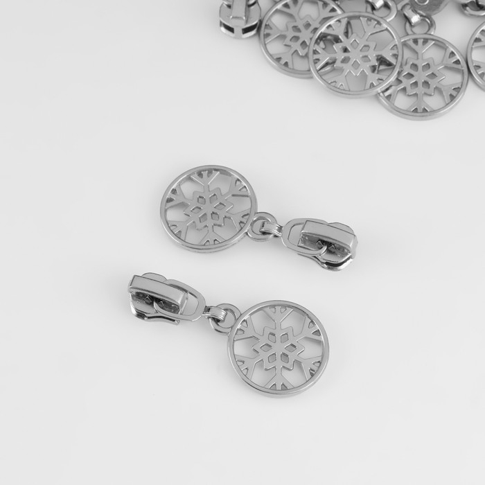 Бегунок автоматический для металлической молнии, №3, декоративный «Снежинка», 10 шт, цвет никель