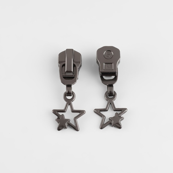 Бегунок автоматический для металлической молнии, №5, декоративный «Звёзды», 10 шт, цвет чёрный никель