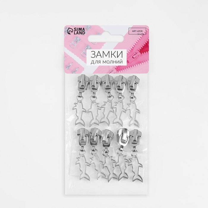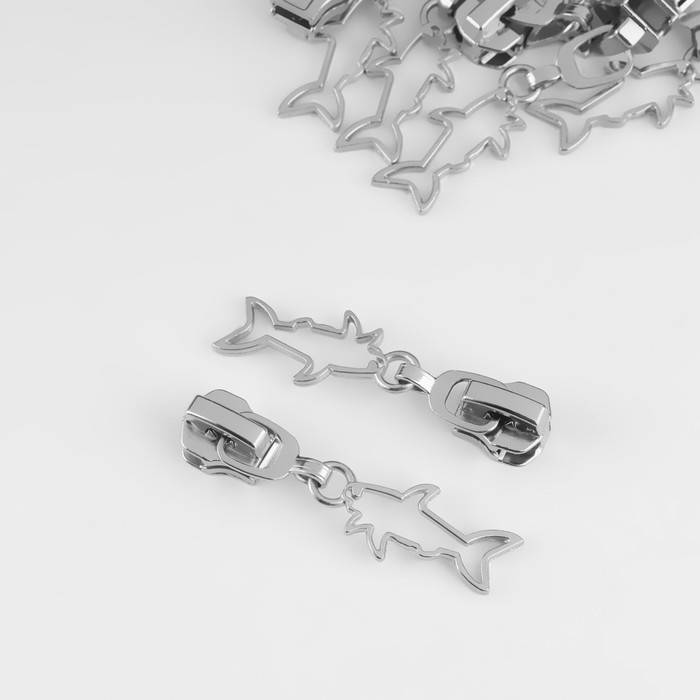 Бегунок автоматический для металлической молнии, №5, декоративный «Акула», 10 шт, цвет никель