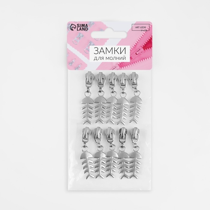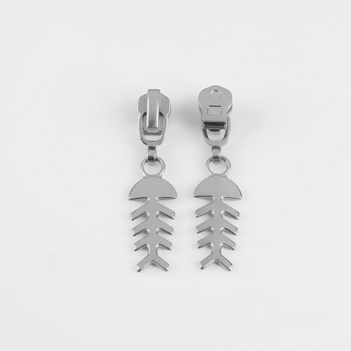 Бегунок автоматический для металлической молнии, №3, декоративный «Рыба», 10 шт, цвет никель