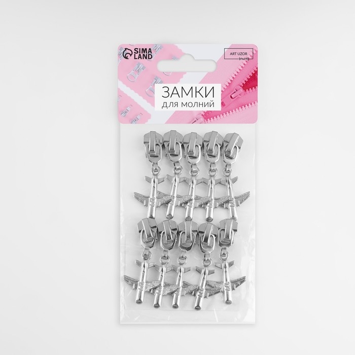 Бегунок автоматический для металлической молнии, №5, декоративный «Самолёт», 10 шт, цвет никель