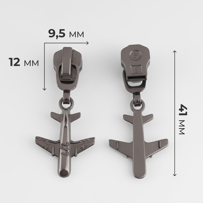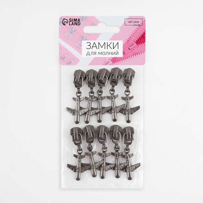 Бегунок автоматический для металлической молнии, №5, декоративный «Самолёт», 10 шт, цвет чёрный никель
