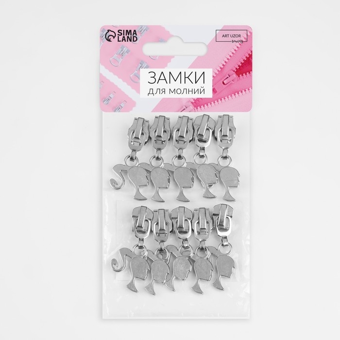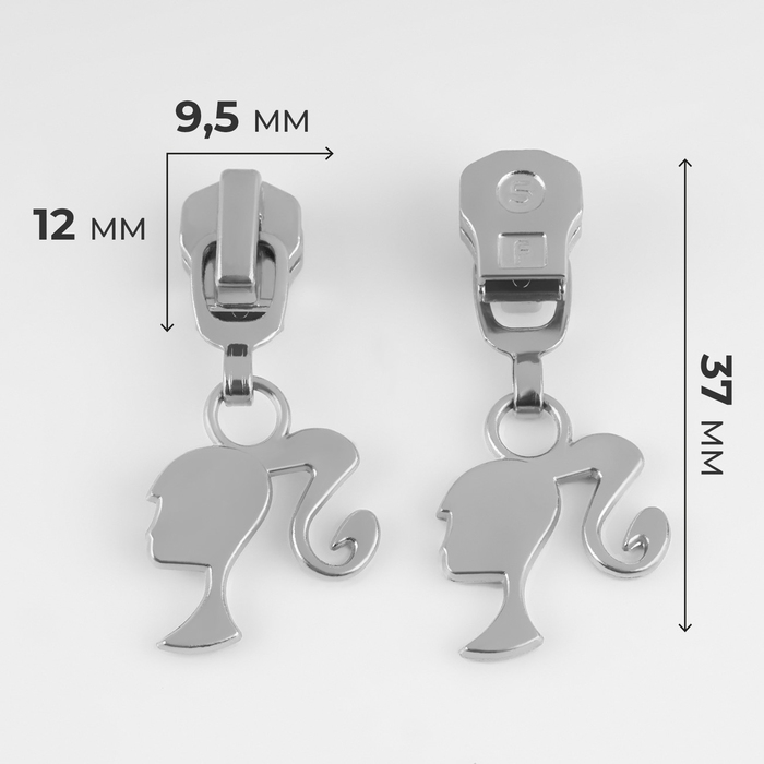 Бегунок автоматический для металлической молнии, №5, декоративный «Кукла», 10 шт, цвет никель