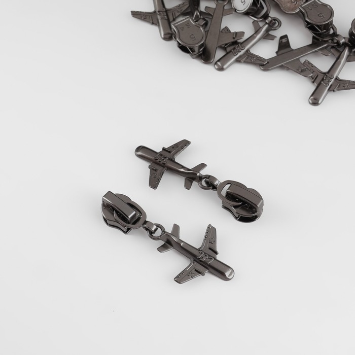 Бегунок автоматический для молнии «Спираль», №5, декоративный «Самолёт», цвет чёрный никель
