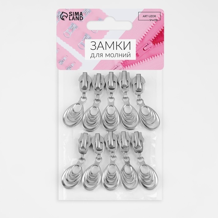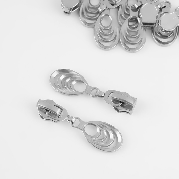Бегунок автоматический для молнии «Спираль», №7, декоративный «Звенья», 10 шт, цвет никель