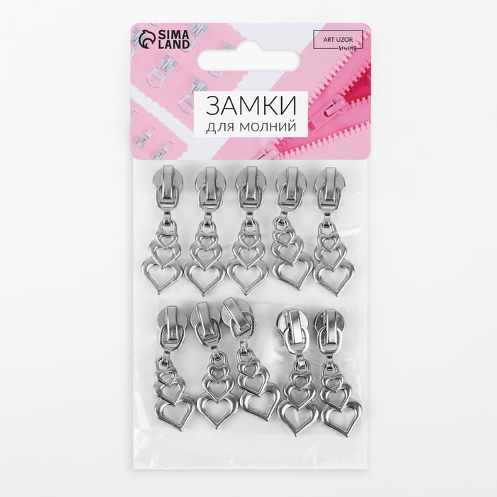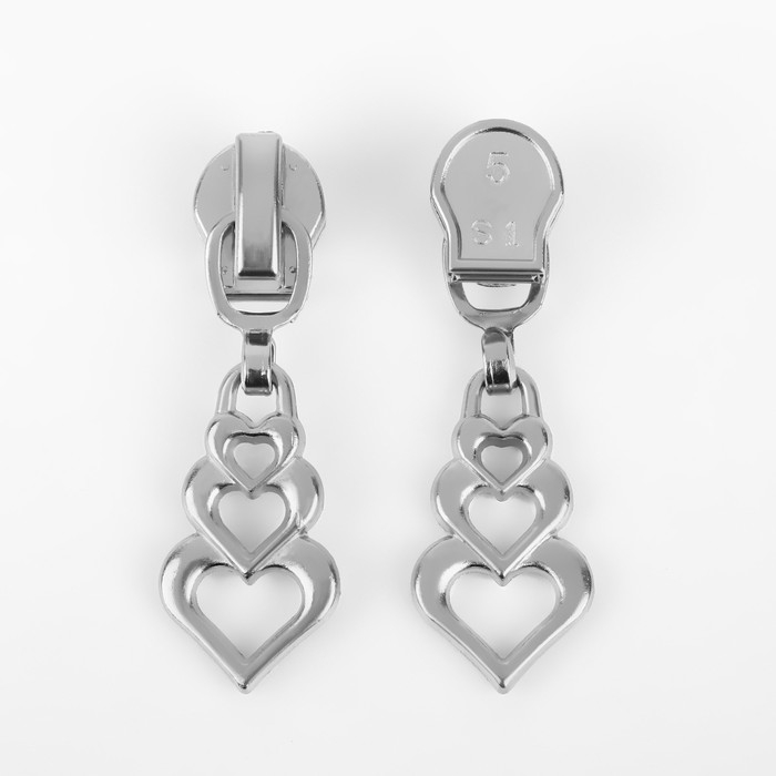 Бегунок автоматический для молнии «Спираль», №5, декоративный «Сердца», 10 шт, цвет никель