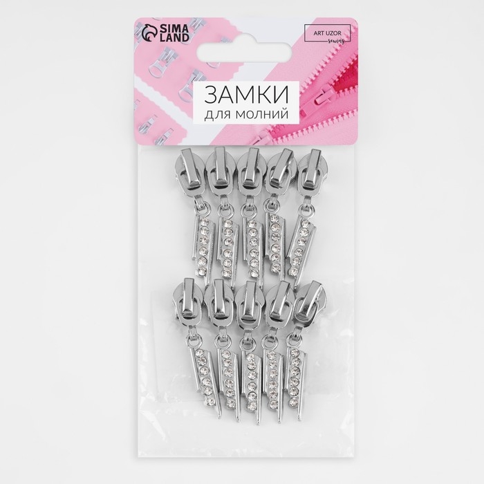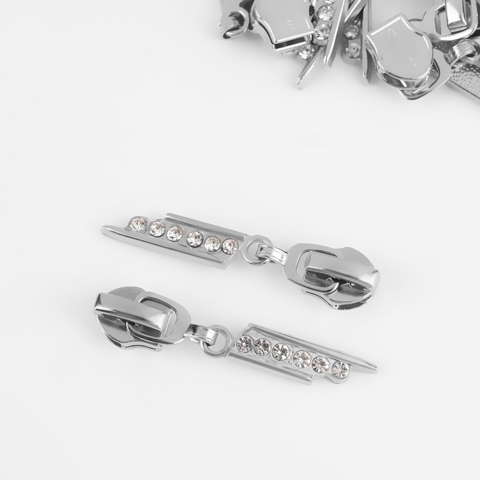 Бегунок автоматический для молнии «Спираль», №7, декоративный «Стразы», 10 шт, цвет никель