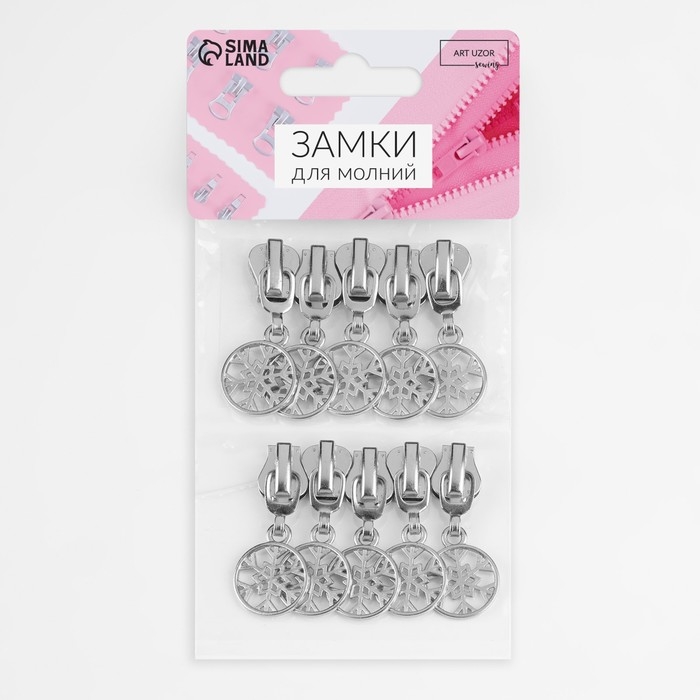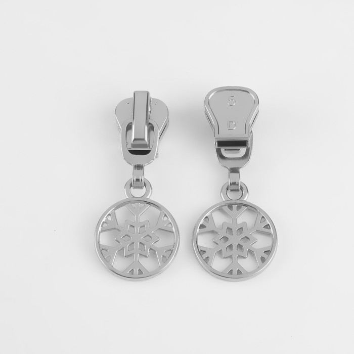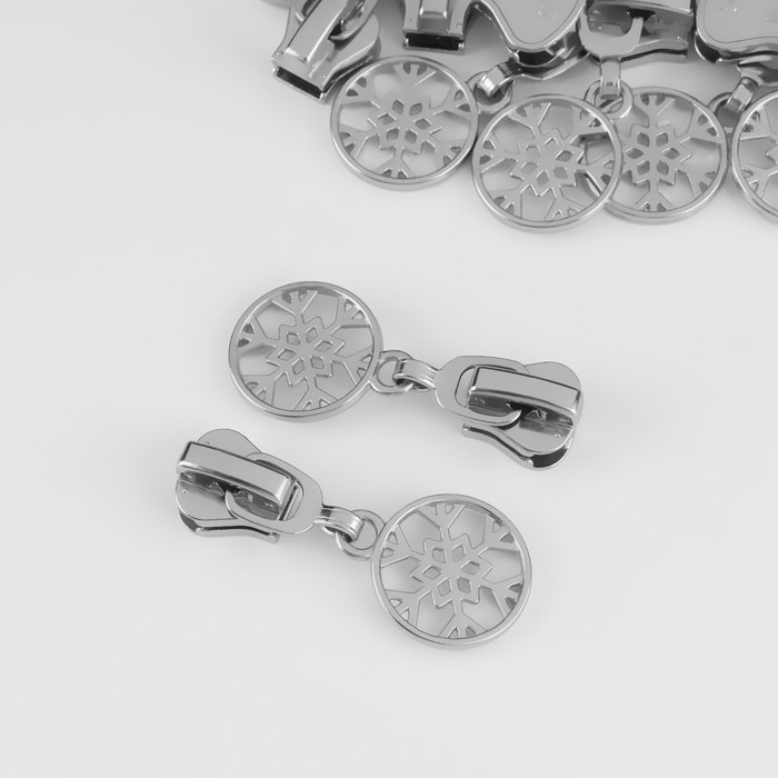 Бегунок автоматический для молнии «Трактор», №5, декоративный «Снежинка», 10 шт, цвет никель