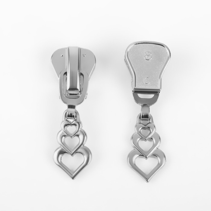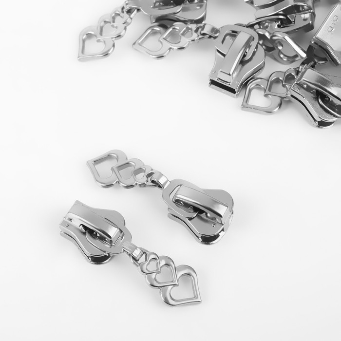 Бегунок автоматический для молнии «Трактор», №8, декоративный «Сердца», 10 шт, цвет никель