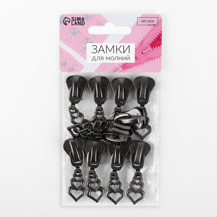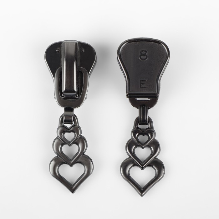 Бегунок автоматический для молнии «Трактор», №8, декоративный «Сердца», 10 шт, цвет чёрный никель