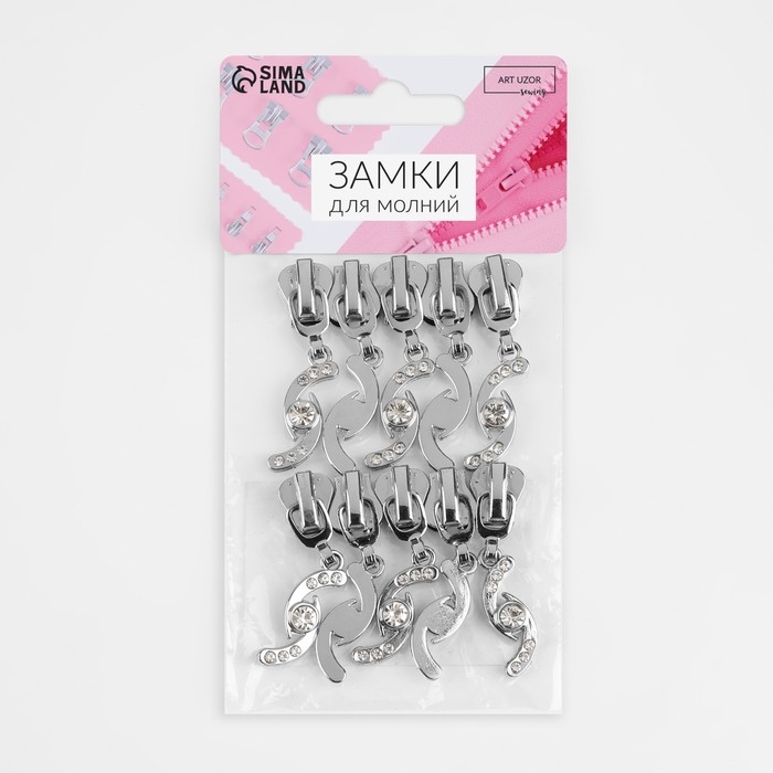 Бегунок автоматический для молнии «Трактор», №5, декоративный «Сияние», 10 шт, цвет никель
